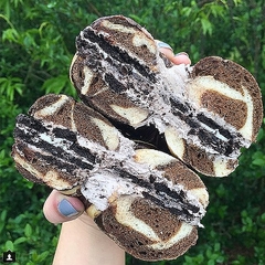 以前ご紹介したレインボーベーグルもインパクト大でしたが、このオレオベーグルもなかなか迫力あるビジュアル。次はいったいどんなベーグルがネットを賑わせてくれるのか、ちょっと楽しみでもありますね。