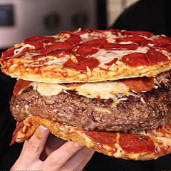 ピザの中にハンバーグが入った「BURGER INSIDE A PIZZA」なるジャンクフードを生み出したアメリカ人が、ハンバーグにピザをぶち込んで、それを2枚のピザではさんでハンバーガー状態にするという「PIZZA INSIDE A BURGER INSIDE A PIZZA」という狂気を感じさせる究極のジャンクフードを生み出しました。