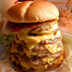 結論から言うと「ハンバーガーではなく、ハンバーグ」だと思って食べた方が良い。ミートパティはパサパサではなくジューシーで、とても美味しかった。申し訳なさそうに添えられていたピクルスと、バンズの裏側にぬられていたケチャップソースが味に少しばかりのアクセントを加えている。だが、バンズ→チーズ→ ミートパティ→チーズ→ミートパティ→チーズ→ミートパティ→チーズ→ミートパティ→チーズ→ミートパティ→チーズ→ミートパティ→チーズ→ミートパティ →チーズ→ミートパティ→チーズ→ミートパティ→チーズ→ミートパティ→ピクルス→バンズという状態で、ほとんどが肉なのだ。