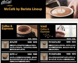 7月には、東京・原宿表参道店にスペシャルコーヒーを提供する売り場を新設した。「マックカフェ バイ バリスタ」と名付けた売り場には専用レジを設け、カプチーノやカフェモカなどを販売した。価格はMサイズで270〜330円と高めに設定した。