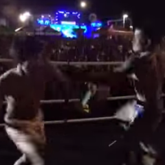 2人目の若者は20秒ほど粘りを見せたが、ムエタイ選手の膝蹴りをまともに喰らい、ダウンしたまま動かなくなってしまう。ムエタイ選手が無理やり立たせたところに、再び膝蹴りを喰らい、若者は倒れこんだまま動けなくなり試合終了。自力では立てなくなり、最後は2人がかりで搬送された。
