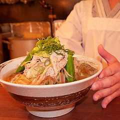 三者が協議を重ねた結果、ラーメンのような雰囲気をかもしつつ、そうめんらしさも存分に味わえるパターンCを「ソーメン二郎」と命名することに決まった。興味深いのは使用した半田そうめんである。これはいわゆる市販のそうめんとは異なり、麺が太い。食感もしっかりしてモチモチツルツルとした舌触りを楽しむことができる。それでいて、ラーメンの麺のようにお腹にたまる感覚がないのだ。サラリと食べられることも、そうめんの魅力のひとつではないだろうか。