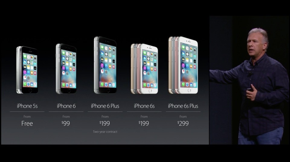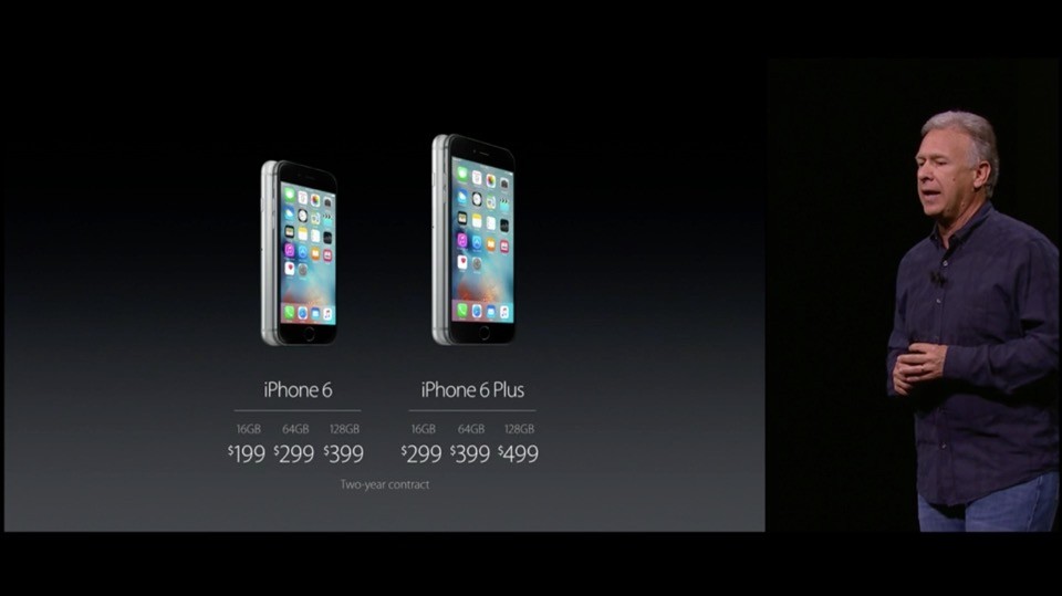 iPhone 6sとiPhone 6s Plusはアメリカで2年契約だとiPhone 6sの16GBが199ドル、64GBが299ドル、128GBが399ドル、iPhone 6s Plusの16GBが299ドル、64GBが399ドル、128GBが499ドル