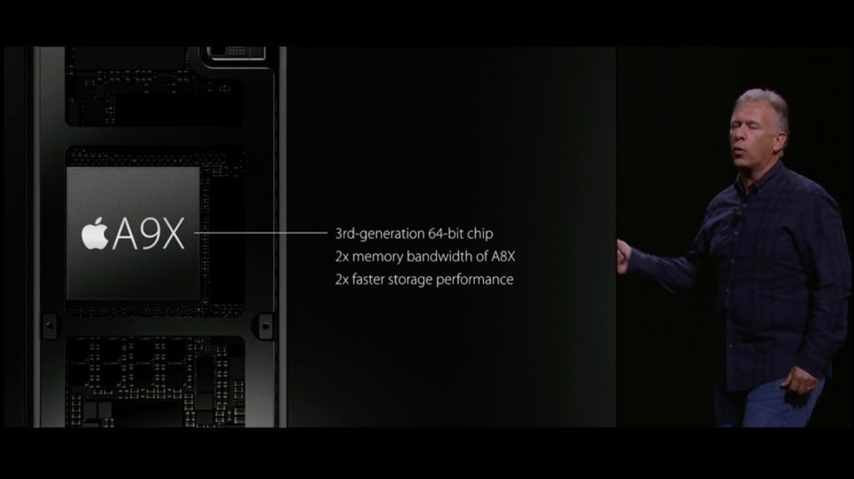 「A9X」プロセッサーに。第3世代に64bitチップセット。A8Xからメモリー帯域が2倍。デスクトップPC並の高性能プロセッサーで、従来と比べてCPU