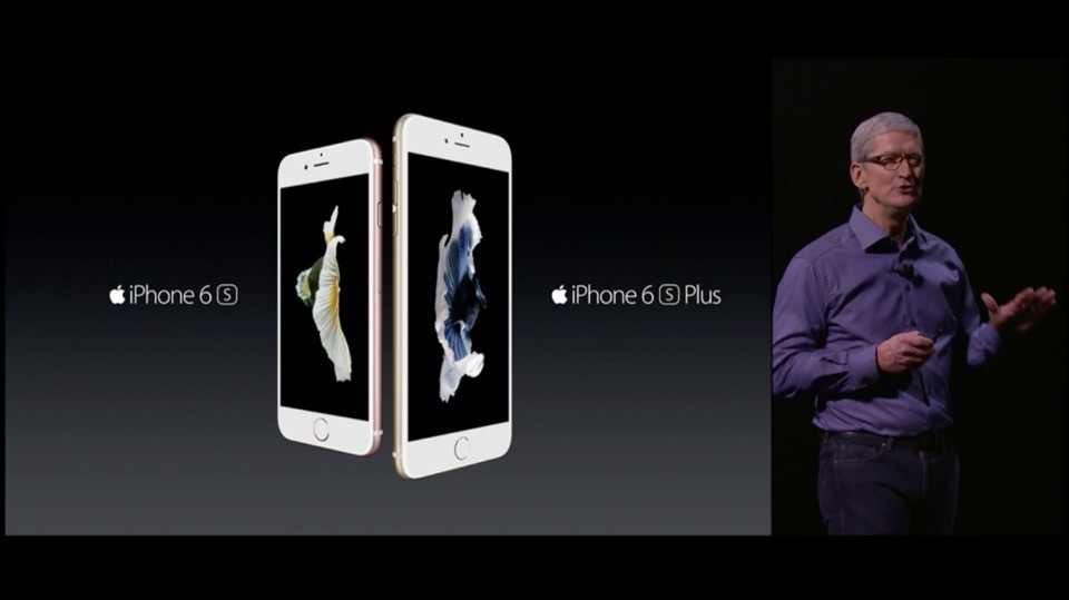 続いて、iPhone。これまでを振り返り、スマートフォン市場は-4%成長なのに対し、iPhoneは特に中国市場ではiPhoneは74%の伸び。そして、新機種「iPhone 6s」と「iPhone 6s Plus」を発表。