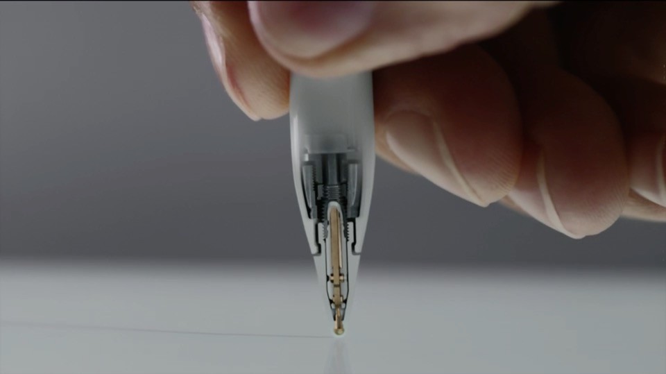 Apple Pencilは感圧と傾きセンサーをペン側に内蔵し、タッチ操作と両立しています。ペンは充電して使い、充電端子はLightning端子。