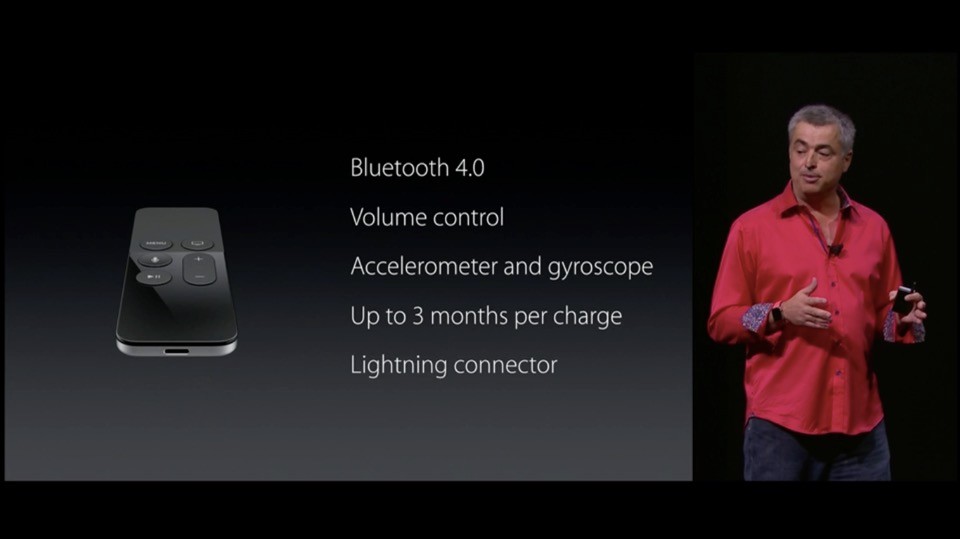 「新しいApple TV」を発表。Siriによる音声操作に対応したリモコン付属。タッチ操作にも対応。メニューボタンの下にSiriボタン。Netflix 、Hulu、iTunesなどに分散する映像を横断検索可能。
