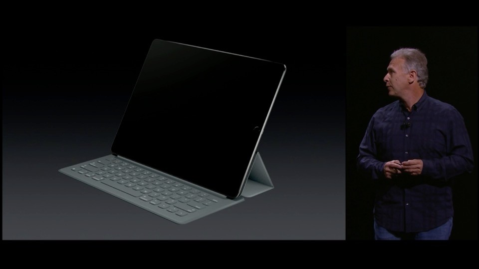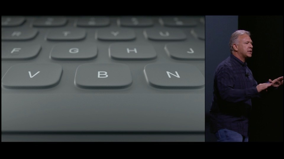 専用キーボード「Smart Keyboard」とタッチペン「Apple Pencil」を用意。キーボードはファブリック素材でカバーも兼ねており、物理キーボードで、新しいコネクター「Smart Connector」でスマートにドッキング。