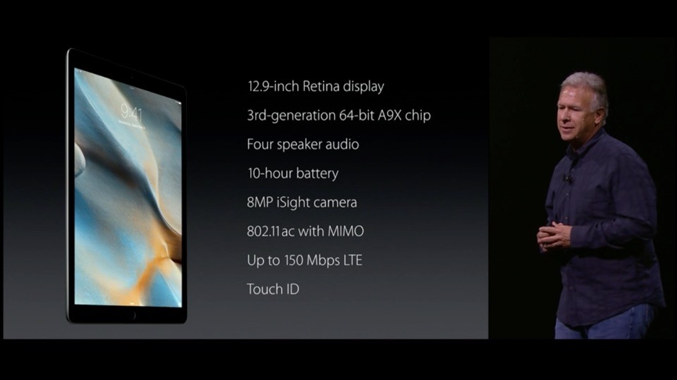 続いてiPad。"The biggest news in iPad since iPad"。12.9インチの「iPad Pro」を発表。