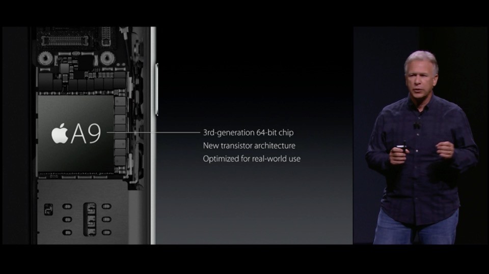New A9プロセッサー。iPad Proに搭載されたA9Xと同じく第3世代64bit対応チップセットで、A8からはCPUで70%、GPUで90%の高速化。また、M9プロセッサーをA9に統合してより省電力化。