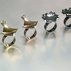 しかし、その方向性にフラストレーションを感じ、次第に「小さくても美しいものを作ろう」とモチベーションのベクトルは変化。結果、蝶とクモの噴水パーツを指輪として昇華させることを決意。完成品が、上記のそれです。