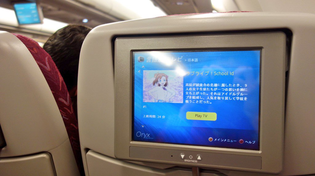 カタール航空、ラブライブ(1話だけ)あって驚いた。機内のディスプレイに日本のアニメが映る衝撃。 https://t.co/ZcDI42i784