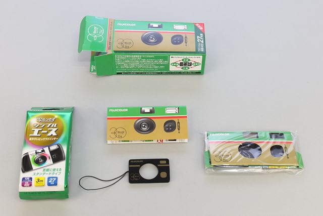 富士フイルムは、30周年を記念した「写ルンです 30周年アニバーサリーキット」を50,000本の数量限定で販売開始。27枚撮りの「シンプルエース」をベースにしたキットで、初代「写ルンです」のデザインをモチーフにした着せ替えカバーなどが同梱されています。価格はオープンですが、実売価格は1,000円程度になっているようです。