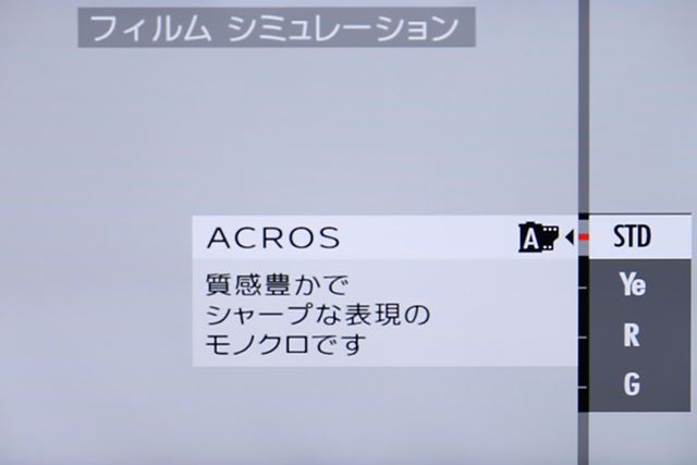 新しいフィルムシミュレーション「ACROS」。モノクロフィルム「ネオパン 100 ACROS」の再現性を意識して作られている