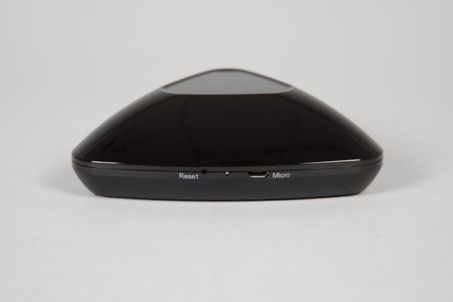 本体側面には、リセットボタンと給電用のmicroUSBポート、無線LANや学習リモコンの状態を確認できるLEDインジゲーターが用意されている。リセットボタンで本体を初期化できるので、万が一、リモコン操作を登録したアプリの入っているスマートフォンを落としたときも安心だ