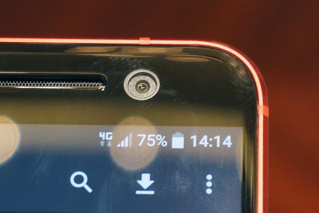 インカメラに約500万画素のイメージセンサーを使用。HTCによると、世界初という光学式手ブレ補正機能を備える