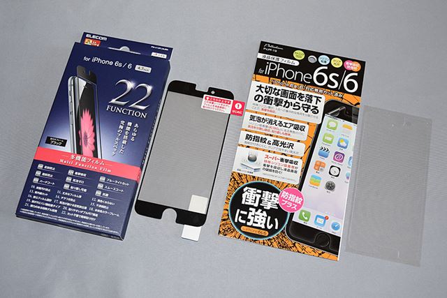 スマホの液晶をキズや割れから保護するフィルムは種類が多く、100円ショップで購入できる安価なものから6,000円近くする高機能製品まで、価格帯もさまざま。そこで、機能や価格の違いによる実際の使い勝手を、エレコムの高機能製品と、100円ショップのキャンドゥ、セリア、ダイソーで売られている100円の製品とで比較してみた。使用したスマホは「iPhone 6s」だ。