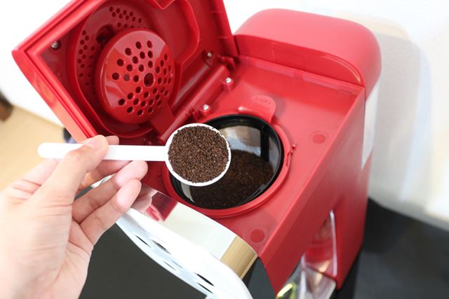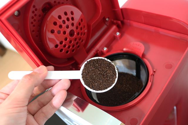 コーヒー抽出の手順は、コーヒーフラッペを作る際と同じ。ホットコーヒーの場合は、コーヒー粉の量は4杯まで