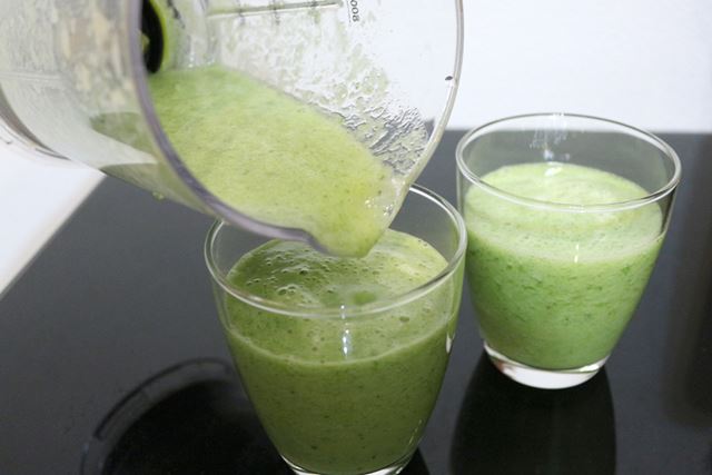 できあがったスムージーは小松菜とパイナップルの繊維を感じる食感で、正直なめらかさには欠ける。もっと長い時間かくはんすればなめらかさが増す可能性もあるが、野菜や果物の栄養素を壊したくないので、これ以上かくはんはしたくない。なめらか系のスムージーが好みの人は、繊維のつぶれやすい材料を選ぶとよいかもしれない