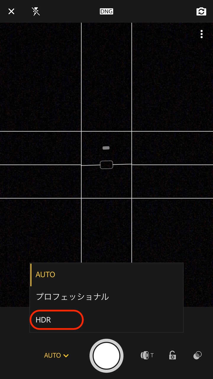 使い方はシャッターボタンの近くにある「AUTO」や「プロフェッショナル」となっているスイッチボタンをタッチし、「HDR」にすれば後は他の撮影と同じようにシャッターボタンを押すだけです。