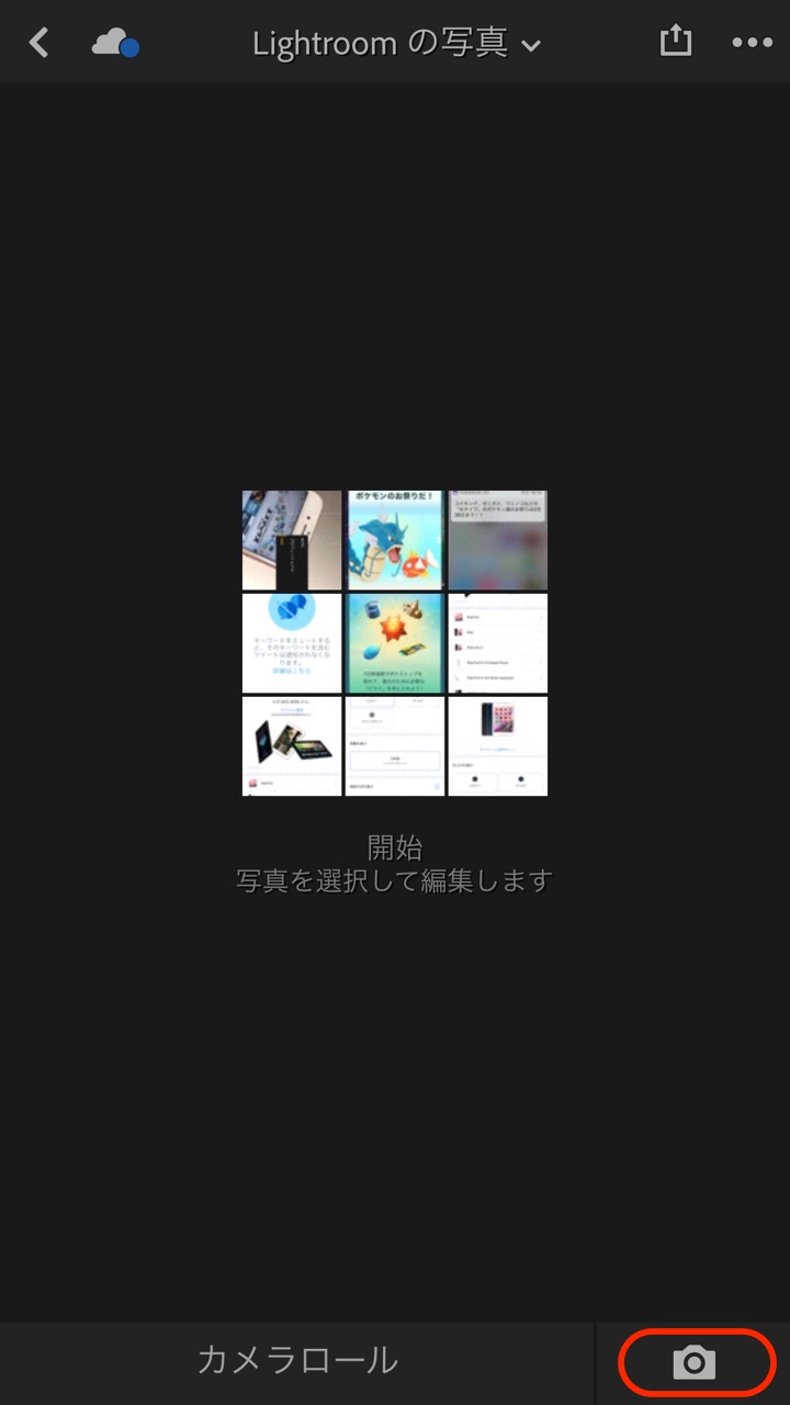Lightroom mobileアプリを起動して、縦画面では右下にあるカメラボタンを押すと撮影モードに。iPhoneの感圧機能「3D Touch」に対応していてONにしている場合には直接撮影モードで起動可能