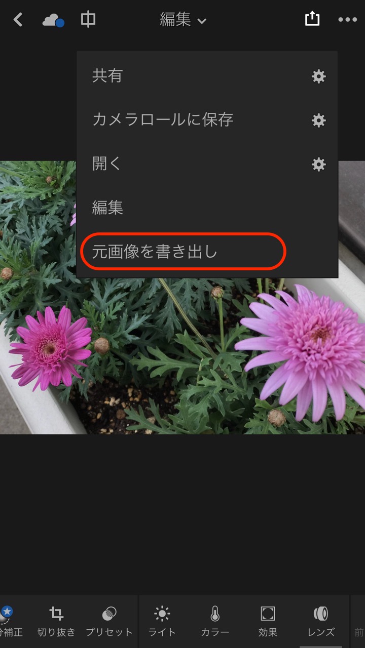 Version 2.7以降では新たに「元の画像を書き出し」機能が追加され、iPhoneなどで撮影して他のアプリでRAW現像したり、クラウドストレージなどで他のパソコン(PC)などデータを同期することも可能となっています。