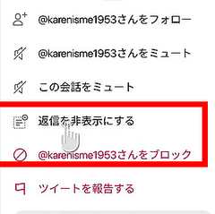 リプライの非表示は、以下のムービーのようにたった2回のタップで行うことができます。