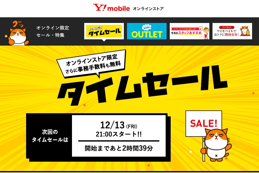 | Y!mobile Online Store限定タイムセールにSIMカードが追加! |