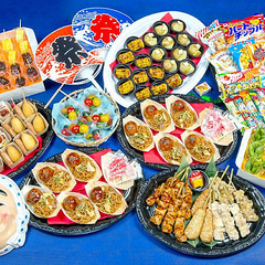 焼きそばや焼き鳥などの定番屋台メニューや、お祭り気分が楽しめる付属品がセットとなっており、自宅やオフィス等場所を選ばずお祭り気分を楽しむことができる本商品。
