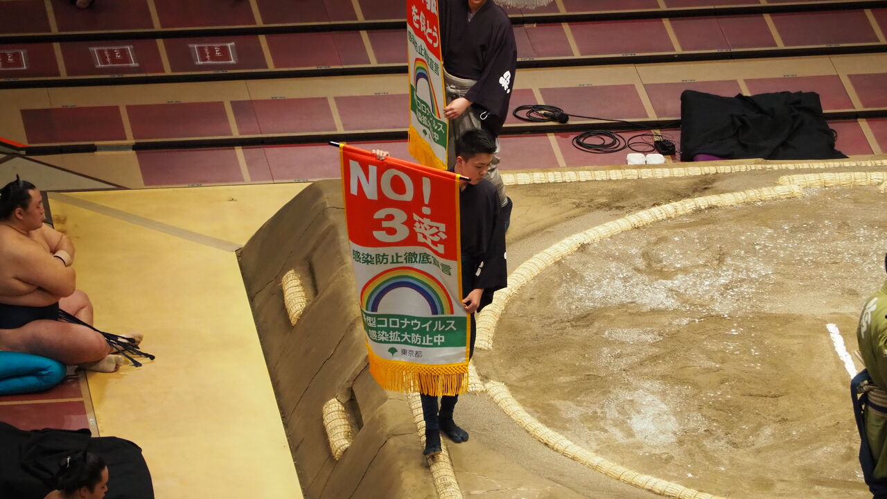 特に手指消毒の徹底ぶりというのは立派なものでした。野球などでも消毒はさせられますが、入場ゲートでやったら終わりというパターンが基本線。しかし、大相撲では入場ゲート前の待機列を係員が巡回して消毒を徹底させたうえに、コンコースから競技場内に入るときにも改めて消毒、さらに携帯用の消毒液を配って必要に応じていつでもやれと要求してくるのです。「20メートルほど向こうで消毒したばかりですが…」と思いつつも、安心感はグッと高まるというもの。