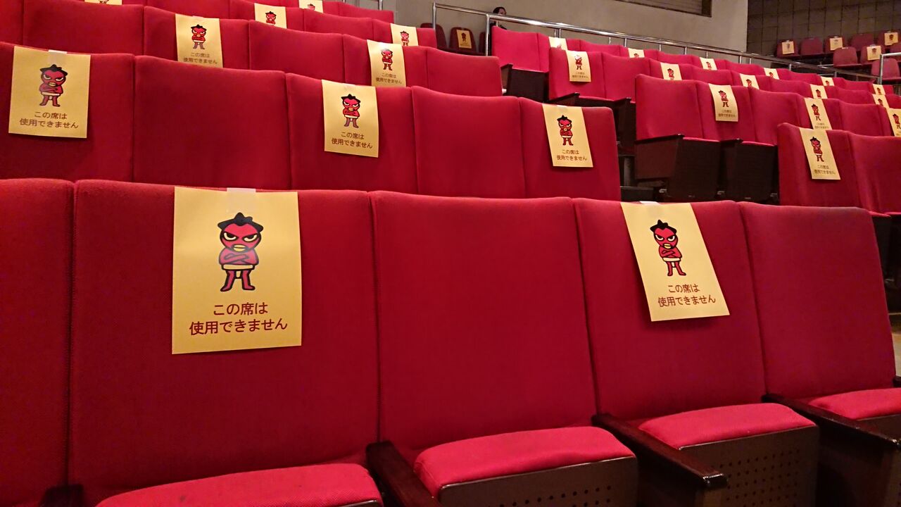 たとえば、座席に貼りつける「この席は使用不可」という張り紙も、ちょっと工夫したら楽しくなるかもしれないじゃないですか。たまたまですが、僕が観覧した中日から大相撲はそのあたりでステップアップしておりまして、最初のほうは事件現場みたいなテープで「使用禁止」と書いていたものを、コワモテのキャラを起用して楽しい雰囲気にアップデートしたのです。