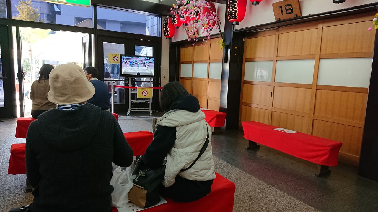 ↓マス席は通常4人座るところを、今場所からは2人で使う体制です!
