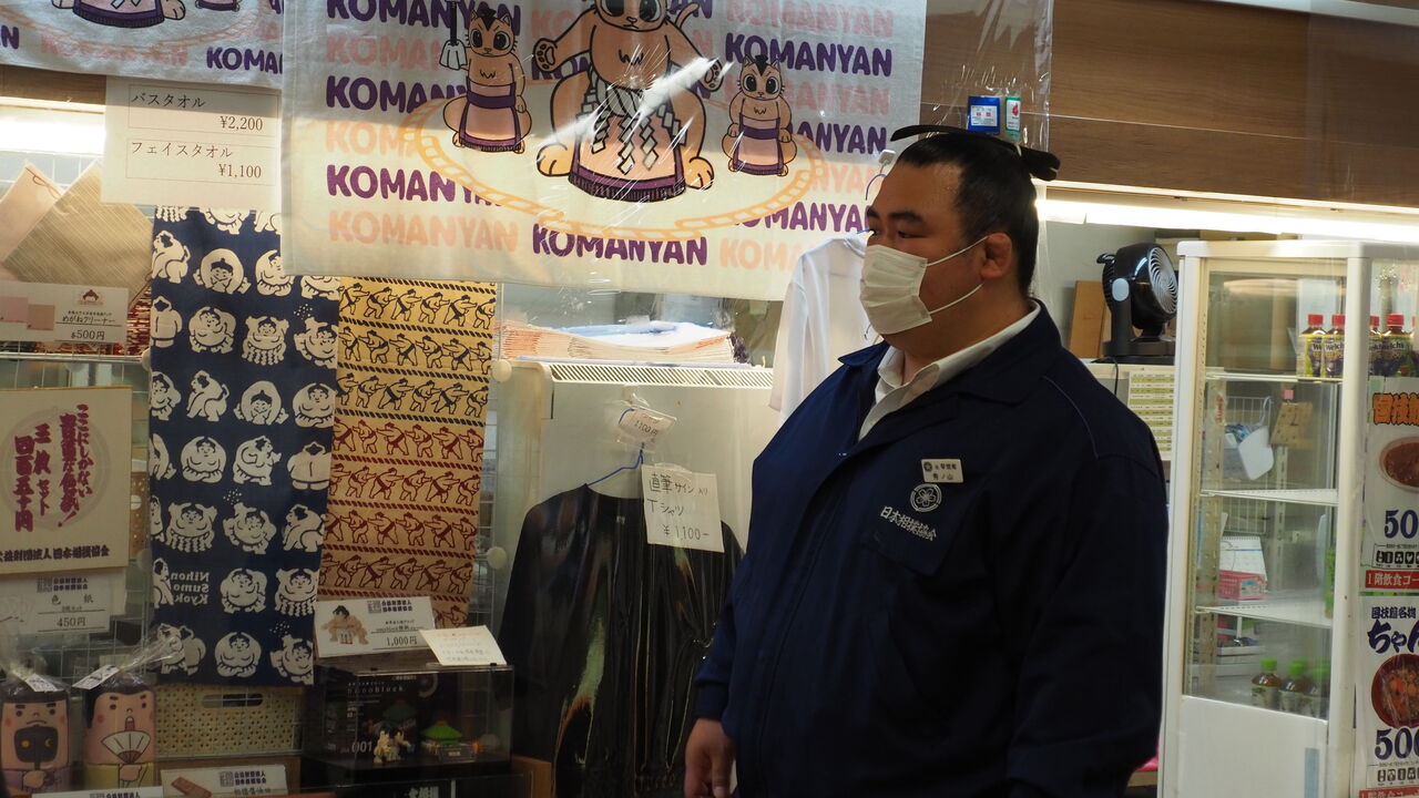 館内を散策しているとさらに「飽きてきとるなー」の光景に遭遇します。公式グッズを売る売店に立ち寄ると、何と元・琴奨菊の秀ノ山親方が売り子をしているではありませんか。親方が売り子をすること自体は国技館では特に珍しい光景でもありませんが、ちょっと前まで大関だった人が売り子をやるとは、なかなかに攻めた営業です。「琴奨菊にファンが殺到することはナイ説を採用かな?」「実際問題、殺到してなかったしな」「新米親方はこういう下働きを経験すべきではある」と揺れ動く僕の胸中。