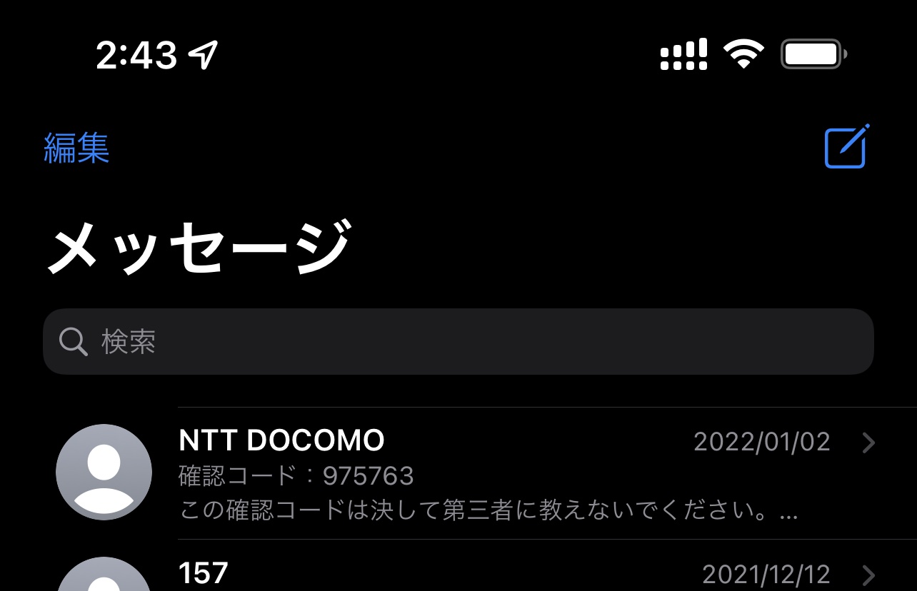 迷惑SMSの例:NTTドコモ