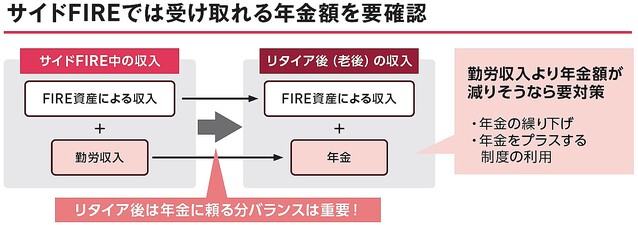 サイドFIREを目指している場合は、年金受取額が勤労収入と同等になりそうかを確認してください。もし老後資金が不足しそうであれば、事前に対策を練りましょう。