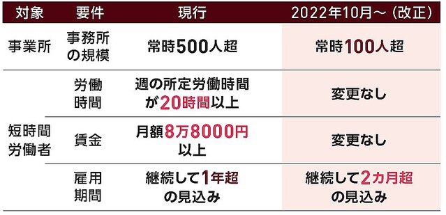 2022年10月に社会保険が拡大し、より小さい事業規模、短期雇用でも、厚生年金に加入しやすくなります。