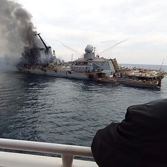 一方、BBCはこの日、「モスクワ」の沈没前と推定される写真が公開されたと伝えた。この写真では、スラヴァ級巡洋艦とみられる軍艦から黒い煙が広がっている。