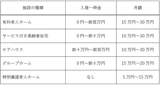 介護が必要となった時には、上記生活費にさらに介護サービスの対価の支払いが生じます。施設に入居するとなると、【図表】で最も安い特別養護老人ホームでさえ毎月約5万円〜15万円の支払いが発生します。年金以外に収入がなければ預貯金を取り崩すスピードが加速し、あっという間に老後資金が枯渇することになりかねません。