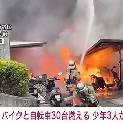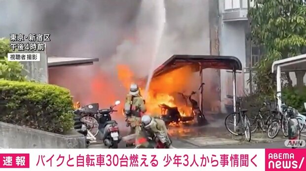 東京・新宿区でバイクと自転車約30台が燃える火事 警視庁が少年3人から事情聞く