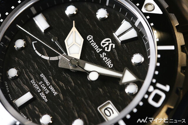 ダイヤルには、日本沿岸を流れ、豊かな恵みをもたらす「黒潮」など「海流」の大きな力を感じさせるダイナミックな波のうねりを、緻密な仕上げで表現。また、セラミック製の回転ベゼル表示板を採用することで、耐傷性も高めた。