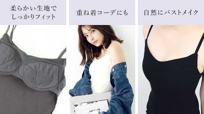 ブラとキャミソールが一体になった、大人気のシリーズです。バストを美しく整えながら、しっかりと盛ってくれるアイテムです。1枚でも着られるので、荷物が少なくなりそうですね。