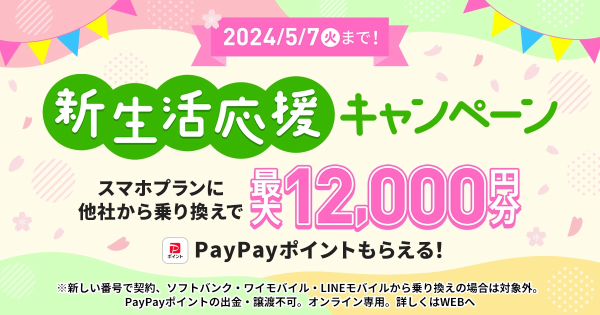 ・「新生活応援キャンペーン2024」を本日から実施します。|新着情報|お知らせ|【公式】LINEMO - ラインモ|格安SIM