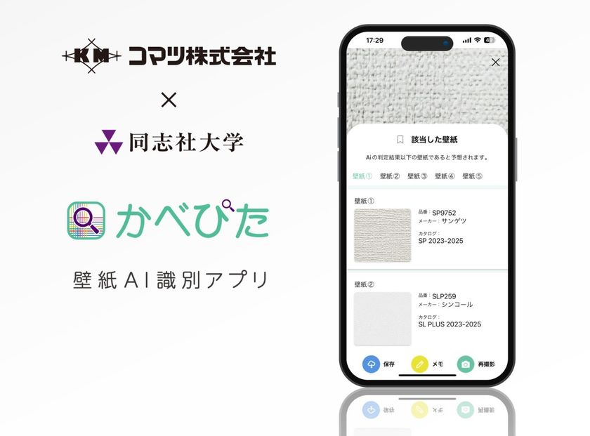 コマツと、同志社大学 理工学部 インテリジェント情報工学科 知的機構研究室が共同開発した「自動テクスチャ識別プログラム」を搭載した壁紙AI識別アプリ「かべぴた」の取り組みが、優れたDXの取り組みを周知・評価する「DXイノベーション大賞2024事業会社部門において優秀賞を受賞。