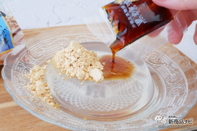 黒糖蜜ときな粉をかけて頂こう。思わずお皿を持ってぷるぷると揺らしてみたくなるほどにぷるっとした見た目。スプーンなどで食べやすい大きさにカットしてから盛り付けてもいい。