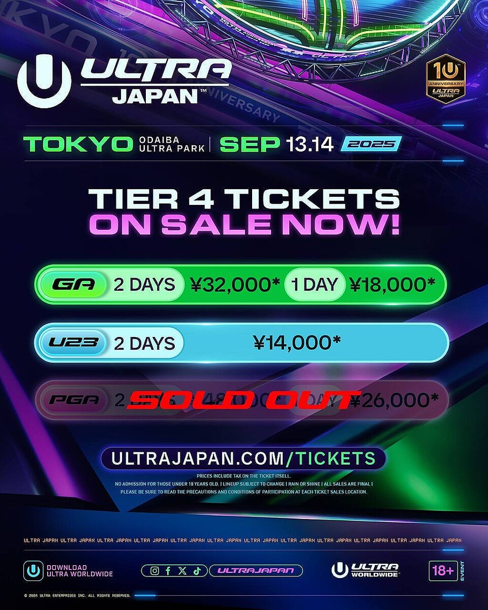 日本最大級の都市型ダンスミュージックフェスティバル「ULTRA JAPAN 2025」 チケット販売情報 【随時更新】