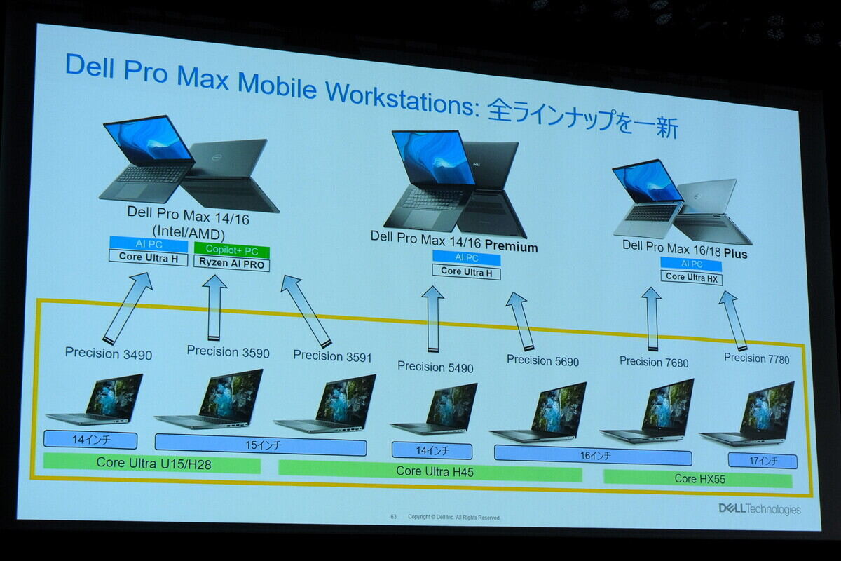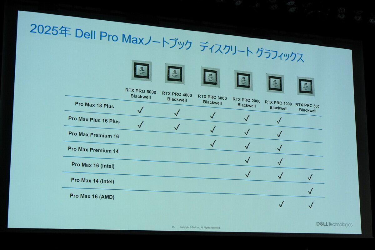 ちなみに同社の製品シリーズでは命名規則を簡潔に改めているところで、今回発表された「Dell Pro Maxシリーズ」は旧「Dell Precision」を継承しています。しかしいざ発表会を眺めてみると、一概に簡潔になった──とは言いにくい新製品たちのお披露目になっていました。