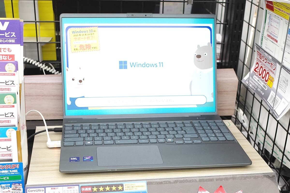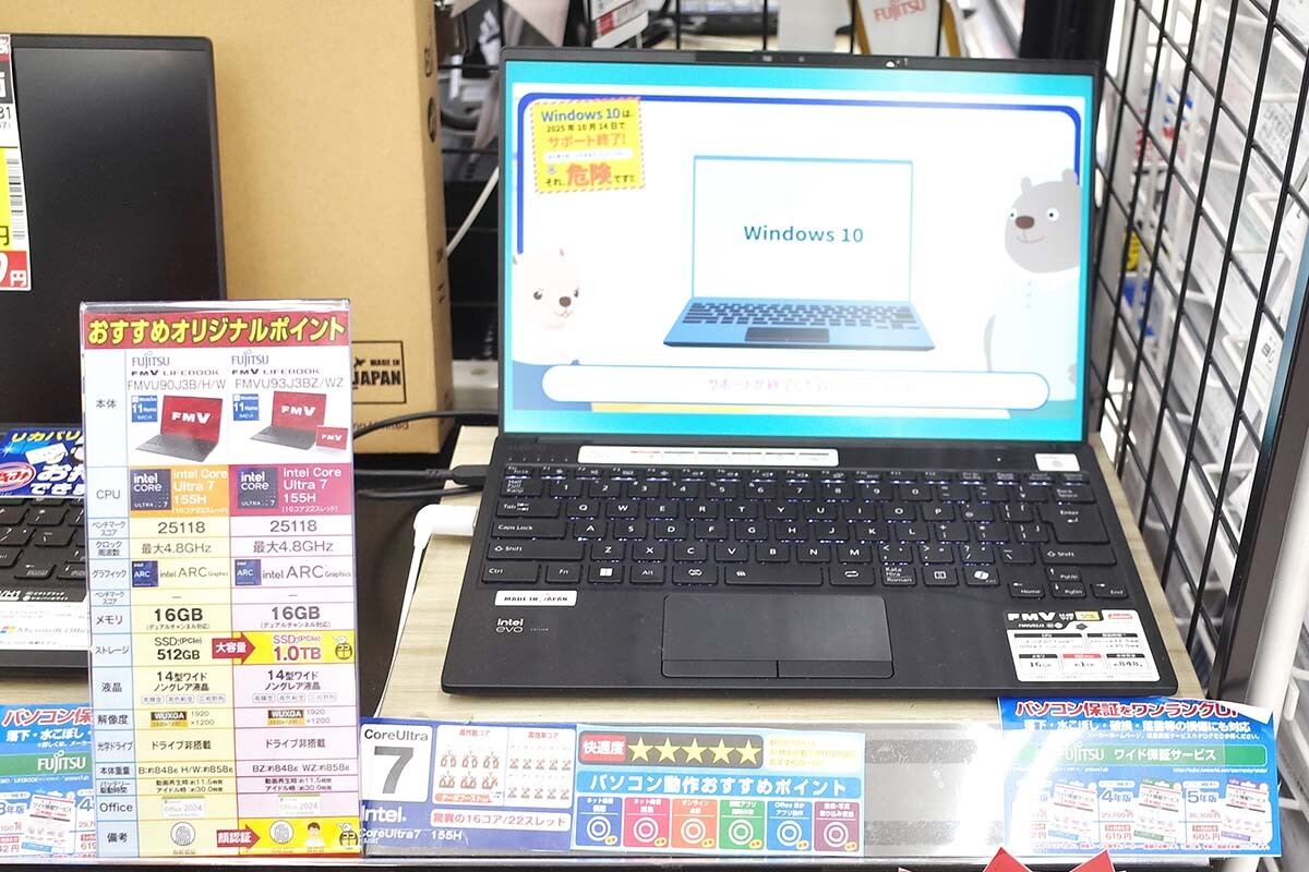 同店のパソコン売り場には、そこかしこに「Windows 10 サポート終了」のPOPが貼られていました。Windows 10は、2025年10月14日に延長サポートの期限を迎えるため、その前に最新のWindows 11を搭載したパソコン環境に移行することが推奨されています。