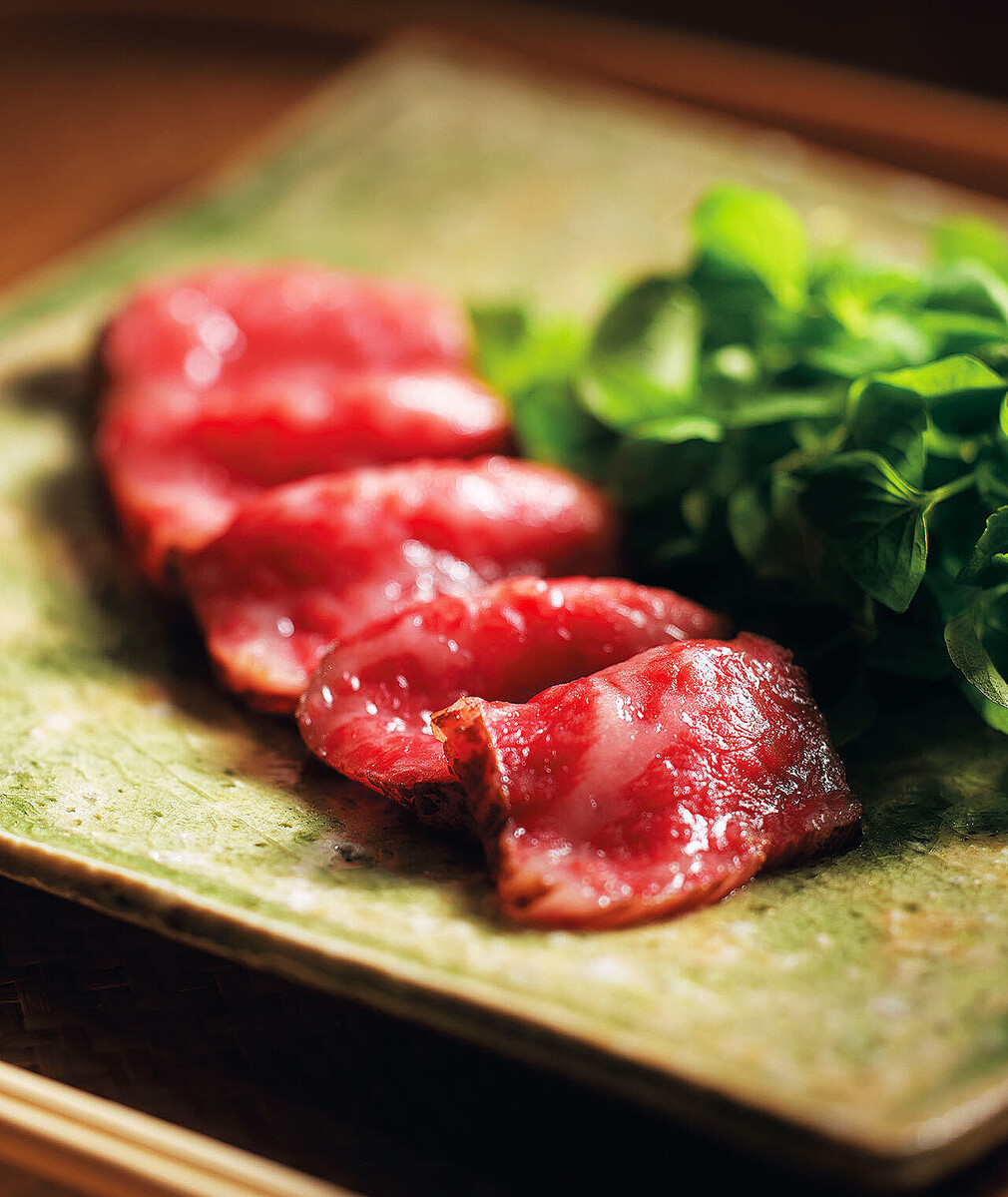牛のたたき。風味の余韻が長い但馬玄を贅沢なたたきに。