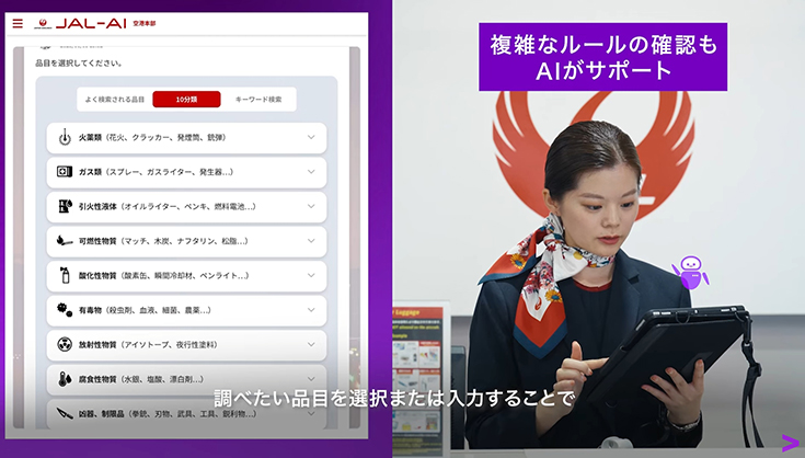 ●機内持ち込みの可否をAIエージェントが迅速に回答