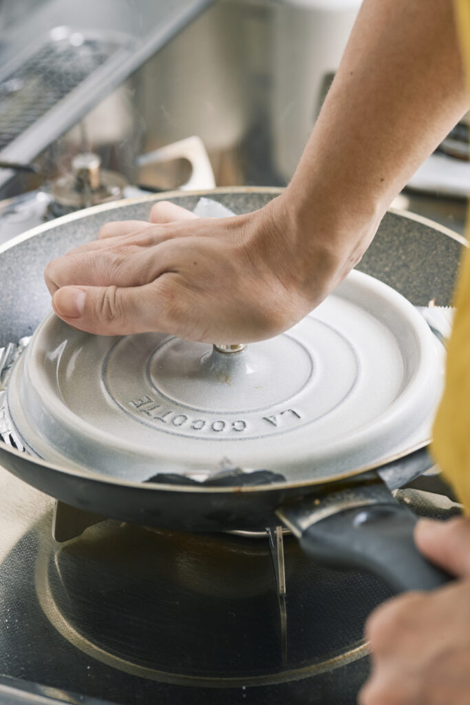 焼くときにのせる重しは、肉をつぶすためにある程度重さがあるものがベターです。